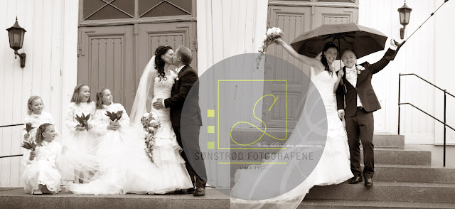 1/2 time ut i vielsen åpner himmelens sluser seg, så jeg bestemmer meg for å møte brudeparet i kirken for å ta noen bilder med barna der. Jeg møter superpositive mennesker som er med på plan A, foto på Hagatjern.